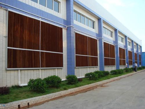 2、濕簾冷風機降溫是用循環水泵不間斷地把接水盤內的水抽出,并通過布水系統均勻地噴淋在蒸發過濾層上,使室外熱空氣通過蒸發換熱器(蒸發濕簾)內與水分進行熱量交換,通過水蒸發而達到降溫、清涼,潔凈的空氣則由低噪音風機加壓送入室內,以此達到降溫效果。