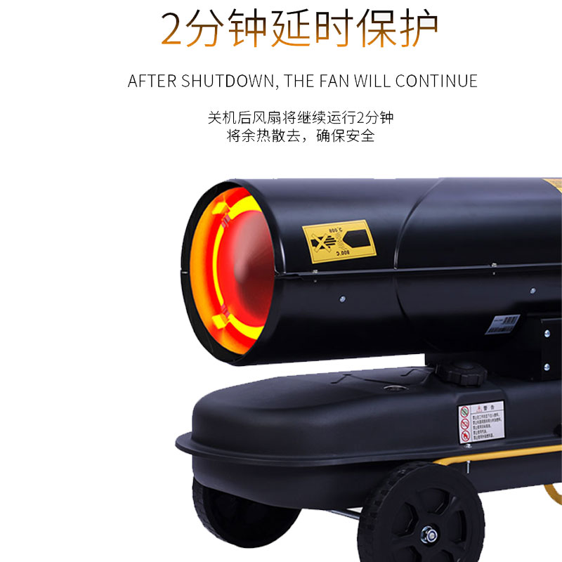 2.柴油暖風機有煙道機型:電子點火式燃油熱風機,裝備有空氣泵,燃燒器、封閉燃燒室帶有尾氣排放裝置、風扇等。